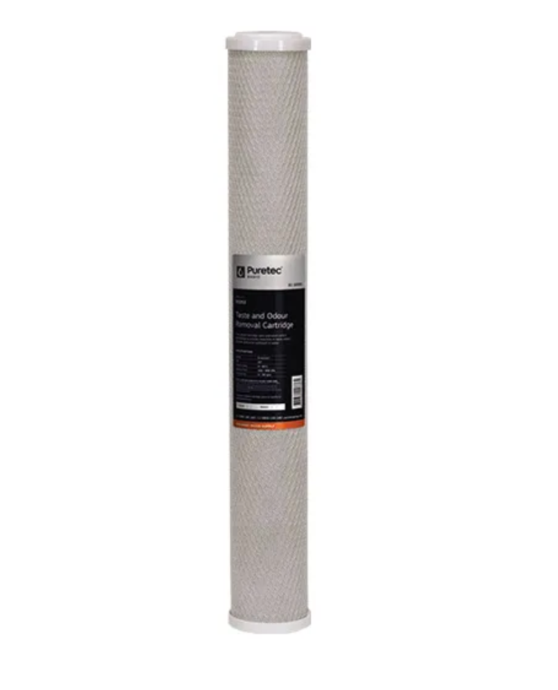The Puretec Basic EC Series 20" extruded carbon large diameter cartridge is designed for the effective removal of chlorine, odours, and taste from drinking water. Featuring a high porosity design, this 5 micron cartridge reduces plugging and optimises carbon utilisation while maintaining low pressure drop.